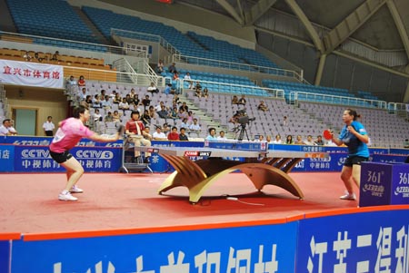 上赛季双打胜率分列二、三位的组合在第三场遭遇。结果江苏队的张潇玉/王璇以3比2(11:13:、11:9、6:11、11:7、11:7)险胜北大队的牛剑锋/白杨,江苏队以2比1再度领先。