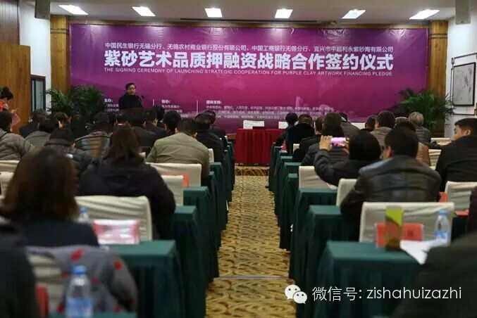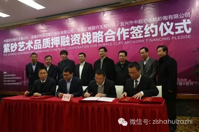 2月2日下午,由中国民生银行无锡分行、无锡农村商业银行股份有限公司、中国工商银行无锡分行、宜兴市中超利永紫砂陶有限公司主办的紫砂艺术品质押融资战略合作签约仪式,在宜兴市阳羡茶文化生态园茶博馆举行。