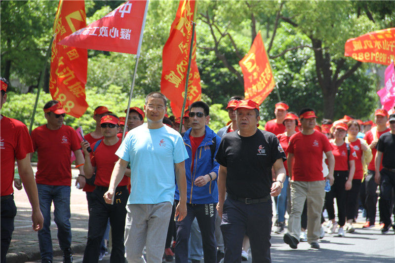10日上午8点,中超集团“行走的力量4.0——团结的力量”再度集结,杨飞、盛海良、张乃明、卢跃中、阳庭宝、刘广忠、沈映斌、陆亚军等集团及子公司领导全程参与。来自集团公司各部门、中超控股、中超电缆及各子公司等一百五十余人冒着今年以来最高的30度的气温,从利永紫砂博物馆出发途径丁蜀、宜城,走过市政府大楼、八佰伴万达商圈,沿着东氿大道,徒步前往山水氿城,在春日柔光美景中,一路观心行走,朝目的地进发。