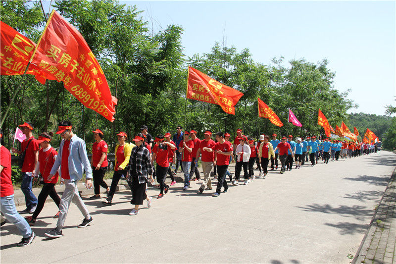 路途中,广大员工按照活动预案穿着统一、队形整齐、步调一致,公司大巴车为行走团开道,穿梭来往的补给车一趟趟为队员们提供饮料、巧克力、水果等各种补给,保障路程的安全顺利,为徒步活动提供强大的后勤保障。队伍中有率队冲锋前阵的还有许多拥有三年队龄的“老将”,除了青年员工外,更是有许多中老年队员们坚持到了最后,队伍中年纪最大的队员已年逾七十。队员们保持劲头,挥洒汗水,鼓足干劲,没有停下前进的步伐,许多队员经过长达3个小时的跋涉,脚跟磨破、遍布水泡,但是都咬牙坚持、微笑面对。中午12点,在董事长杨飞的率领下,大家抵达目的地山水氿城。