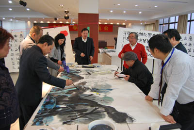 28日,书画家们在中超大厦十五楼对山临江,挥毫泼墨,创作了一批主题鲜明、品位高雅、形式多样、笔意遒劲、昂扬向上、具有浓厚生活气息的作品,充分展示出春之韵下中超和宜兴市经济、文化不断蓬勃发展所取得的丰硕成果。