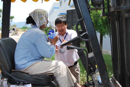 领导们每到一处,都向员工们送上冰水等清凉饮料,并叮嘱大家注意身体,避免疲劳操作,避免中暑,在生产旺季确保安全运行。