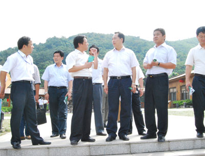 当日下午,江苏省旅游局副局长张骥,无锡市委常委、市纪委书记王继鹏,市委常委、宣传部长王立人,宜兴市副市长华学文及省、市旅游局、农业局等相关单位领导组成的无锡市乡村旅游工作推进会一行百余人,专程前往中超集团下属子公司阳羡茶文化生态园视察。