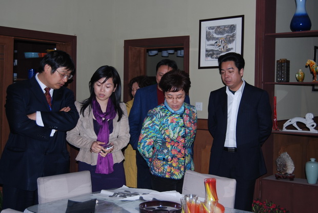 在听取杨飞董事长关于电视剧总体情况介绍后,许伟英饶有兴致地参观了拍摄现场,详细询问了剧组拍摄的进展情况与演员生活情况,兴致勃勃地观看每一件拍摄道具并对电视剧的拍摄场景、人物对白、故事情节提出了许多宝贵意见。在视察中,许伟英对中超影视传媒取得的成绩给予了充分肯定并对电视剧的拍摄提出殷切希望。她指出,中超集团能够主动开辟新市场、探索新思路,积极投身文化产业建设,推动宜兴文化产业发展,十分值得其他企业借鉴。希望中超影视传媒继续坚持“高起点、高标准、高要求”的三高原则,努力为广大电视观众拍摄出更多优秀的电视剧作品,为带动宜兴文化产业更好更快的发展做出应有的贡献。