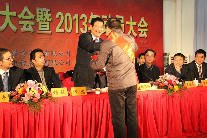 2013年2月6日下午,中超集团2012年度总结表彰大会暨2013年动员大会隆重召开。中超集团董监高成员,各控股子公司总经理,中超电缆全体高管,明珠电缆、远方电缆、锡洲电磁线三家企业的总经理和代表,被表彰的先进企业代表和优秀工作者、优质供应商及各类先进、全体员工参加了表彰大会。徐舍镇党委书记何忠莅临大会现场。 表彰大会由中超电缆总经理张乃明主持。董事长杨飞在会上作了工作报告,他对2012年集团公司整体的工作进行了全面而深入的总结,对2012年度集团公司特别是中超电缆所取得的成绩给予了充分的肯定,同时也指出了这一年我们工作中存在的问题和不足,指明了改进的方法,并对于2013年整个集团的发展方向和经营目标作了明确的规划。 随后,大会举行了隆重的颁奖仪式,与会领导和嘉宾向各项先进获得者颁发了证书和奖品,现场气氛空前热烈。大会特设的忠诚员工奖用以表彰那些自2004年征地建厂以来就与中超风雨同舟、不离不弃,为中超的发展事业立下了汗马功劳的创业元老们,更是将颁奖仪式推向了高潮。 大会结束前,徐舍镇党委书记何忠在会上作重要指示,他充分肯定了中超集团2012年度所取得的卓越成绩以及为推动徐舍镇经济发展所作出的杰出贡献,同时他也对企业未来的发展提出了宝贵的意见和建议,他希望公司能够按照既定方针继续稳健、快速发展,朝着“双百亿”强企的目标快速推进,为推动徐舍镇、宜兴市经济的发展作出新的更大的贡献。