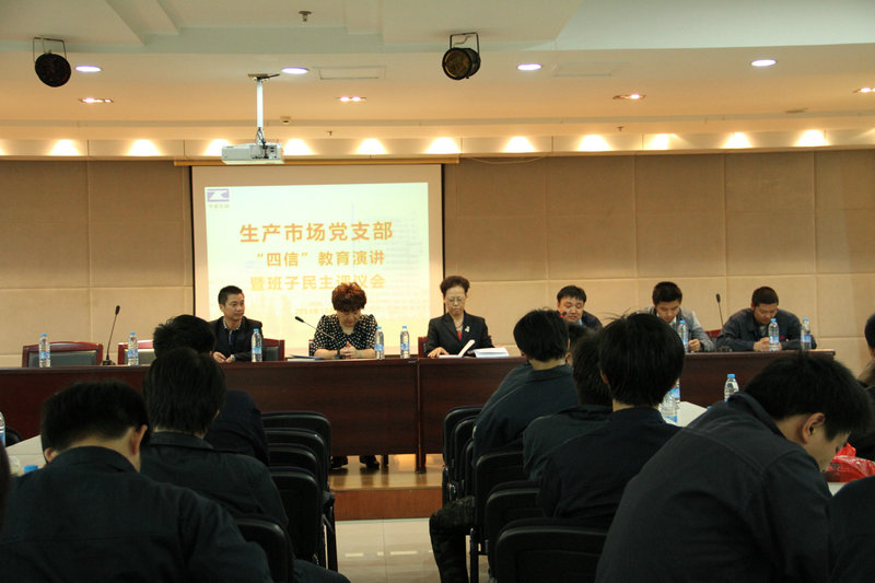 10月15日晚,生产市场党支部在中超大厦15楼召开了四信教育演讲暨班子民主测评会议,近100余名生产市场部党员和员工参与了会议,支部专职书记沈祥芬主持了会议,党群办主任、集团行政部总经理陈永红应邀出席了会议。