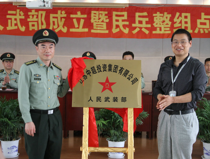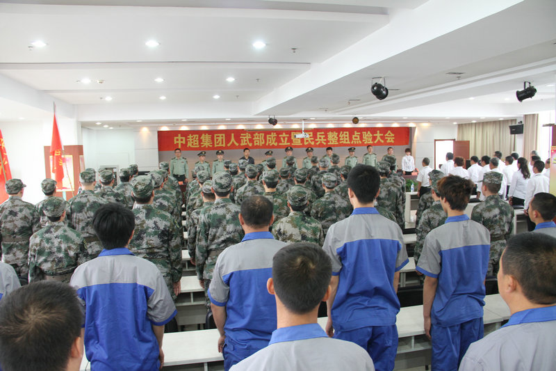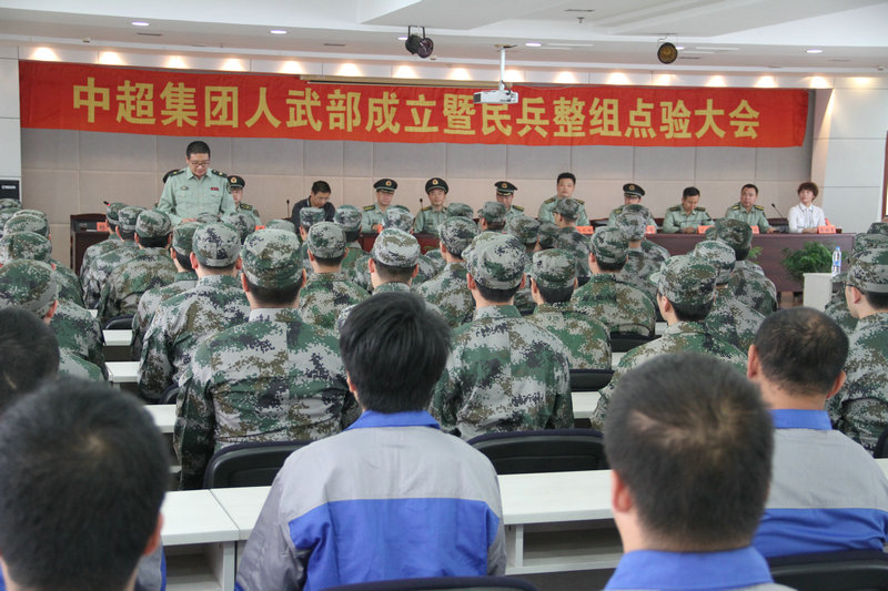 5月8号上午,中超集团人民武装部成立暨民兵整组点验大会在中超大厦十五楼隆重举行,无锡军分区政委柳江南,政治部主任徐真柱,宜兴市委常委、市人武部政委蔡卫红等军分区检查组和市、镇人武部领导出席了成立仪式,仪式由市人武部部长张凡明主持,集团党委书记、董事长杨飞,集团党委副书记蒋丽隽出席现场。集团副董事长杨俊被任命为中超集团人武部部长。公司武装部作为宜兴市首批成立的两家武装部之一,接受了上级领导检阅。 成立仪式上,全体集团基干民兵整装待发,精神抖擞等待接受整组点验。徐主任宣读了成立中超集团人民武装部的批复,随后柳政委和董事长杨飞一起为中超人民武装部揭牌,随着鲜红的幕布落下,蔡政委宣读了杨俊为中超人武部部长的任命,庄严宣告中超集团人民武装部正式成立。 在场的一百多位民兵随即用勃发的精神面貌接受了杨俊部长的点验,民兵队员在杨俊部长的带领下宣誓,表示将坚决服从党的领导,积极认真参与各项军事活动,为建设社会和公司做出贡献。集团党委书记杨飞指出,公司在市人武部的有力指导下,成立了车辆装备维修分队和重要目标警戒分队、勤务保障分队。我们要在重视经济发展的同时,不断提升企业军事化建设和武装力量,为企业注入了新的活力,为公司和谐发展、全力支持国防建设提供平台、奠定扎实基础。 柳政委在成立仪式上表示,集团成立武装部将是中超历史上的重要里程碑,他对公司当前的特色党建工作表示充分肯定,希望公司以后能狠抓综合应急能力建设,努力打造一支听党指挥、作风过硬、技术精湛的专业民兵队伍,开拓创新,期许企业不断加强民兵建设工作,为促进经济、社会和谐发展作出更大的贡献。