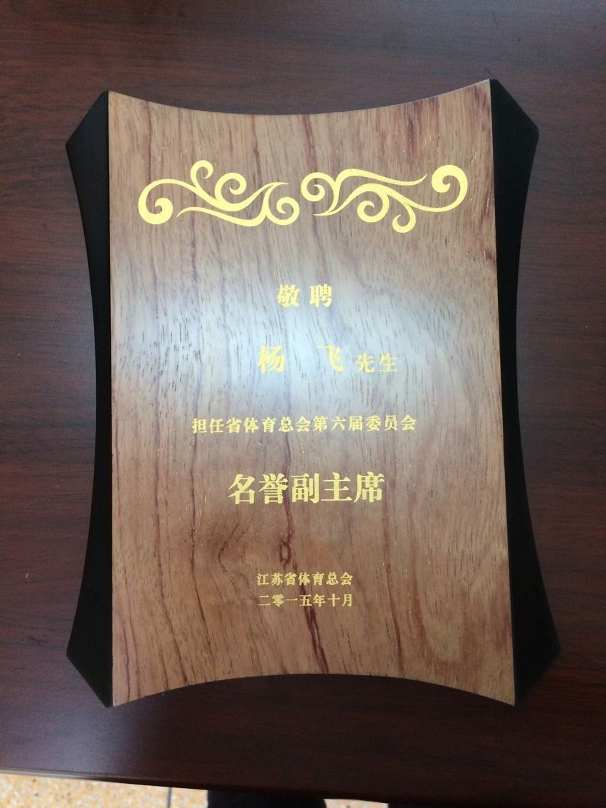 十月,江苏省体育总会第六次代表大会顺利召开,会上杨飞董事长被聘任为省体育总会第六届委员会名誉副主席。