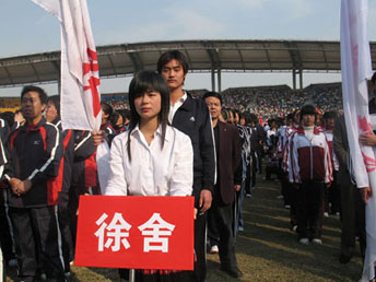 杨健(中二)担任徐舍镇职工运动员代表团旗手 |