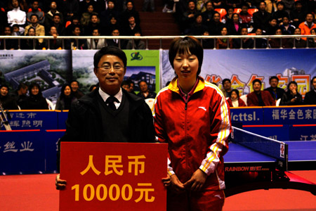 之后,江苏中超电缆乒乓球俱乐部运动员,女子乒坛名将范瑛、张潇玉也都分别代表俱乐部和运动员、教练员进行了捐款。泗阳教育局杨股长代表基金会接受了捐款。