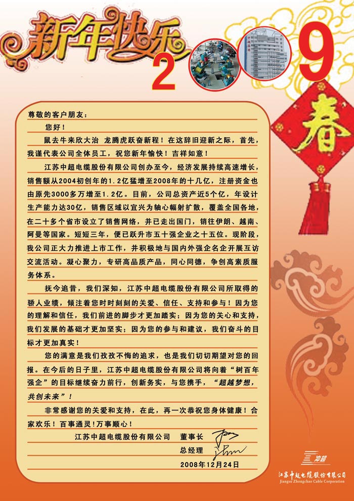致中超客户朋友的新年问候