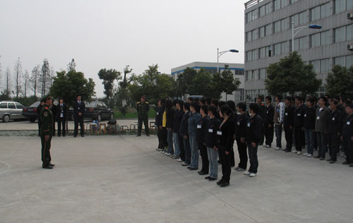 公司以2007年十月以后录聘的新员工为对象,于2008年3月5日――12日,对150多名员工分两批,进行了各为期三天的严格的军事训练。整个培训内容丰富,训练严正,组织有序。